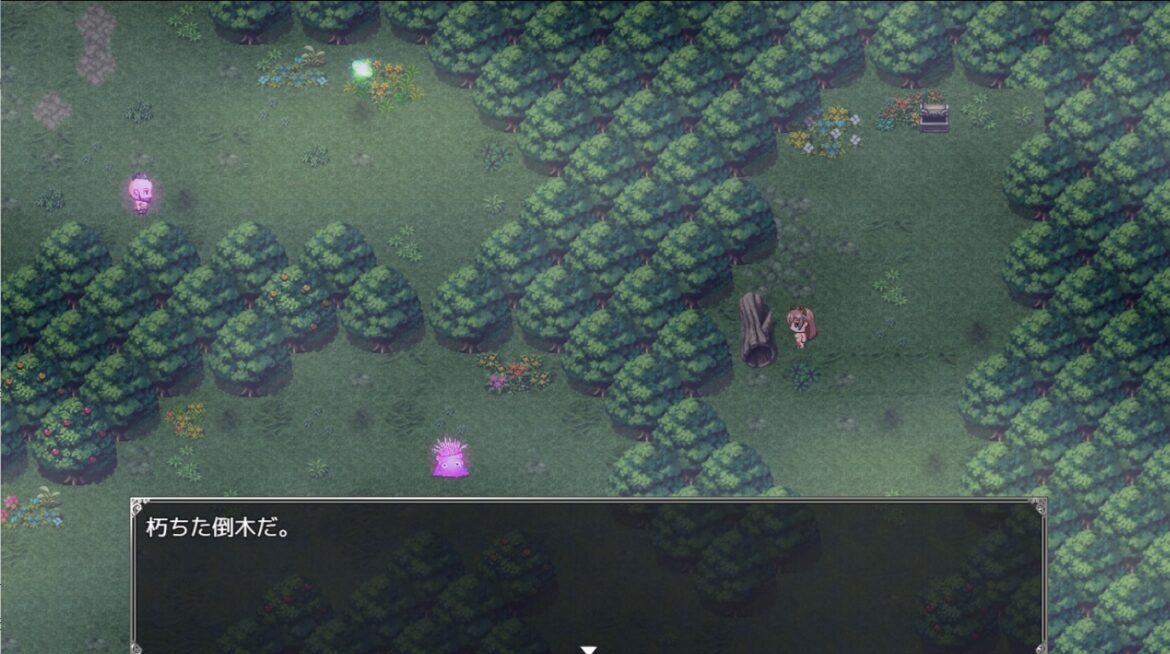 ・アイテム「まほうの実×1」【この場所】苔の生えた倒木(3マップ目北行き止まり)