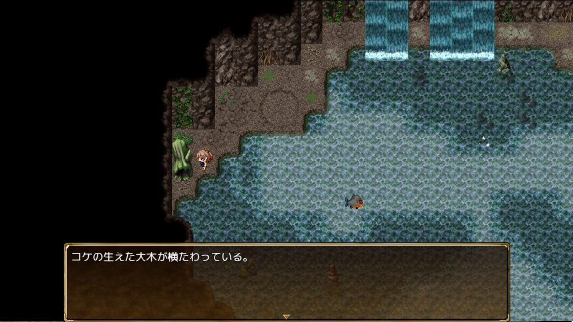 水着を着て進みましょう。道中の滝の真ん中を進み最奥でボス戦
